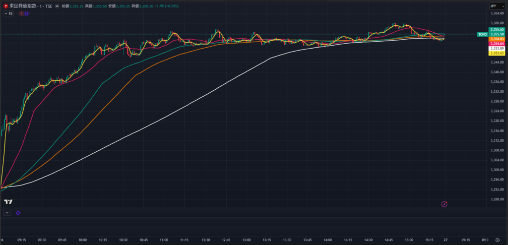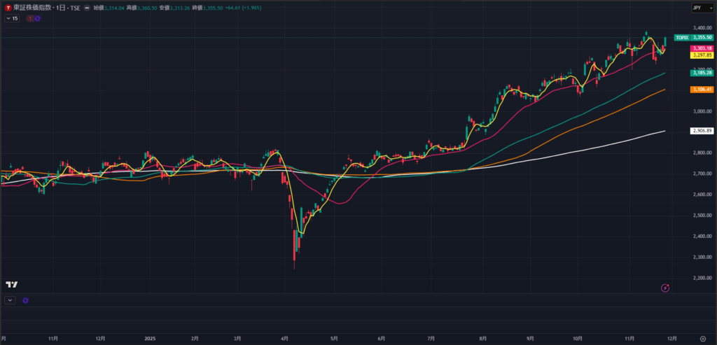 TOPIXも大きく上昇。今日は銀行、建設などの内需株も買われていました。