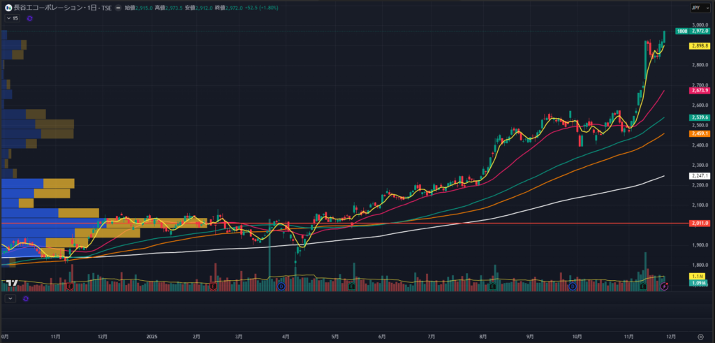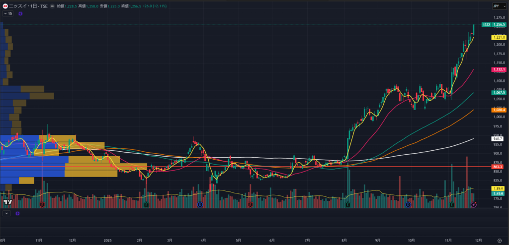 水産事業と加工食品を中心に、漁業・養殖・冷凍食品などを幅広く展開する食品メーカー。こちらも決算後から買われ続け、本日高値を更新。